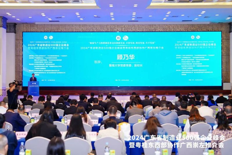 本次会议由广东省制造业协会、广东省发展和改革研究院、暨南大学产业经济研究院联合广西壮族自治区党委统战部、中共崇左市委员会、崇左市人民政府主办,峰会以“新质生产力助推制造业迈向创新发展、开放发展、协同发展、共享发展”为主题,贯彻落实国家战略部署,推动粤桂东西部协作交流,搭建广东制造业500强企业与广西崇左产业对接交流平台,围绕我省制造业企业寻求多元化发展之路,畅谈企业在政策支持、产业转型升级、投资结构优化、市场开拓等经验担当,推动广东制造大省迈向制造强省。